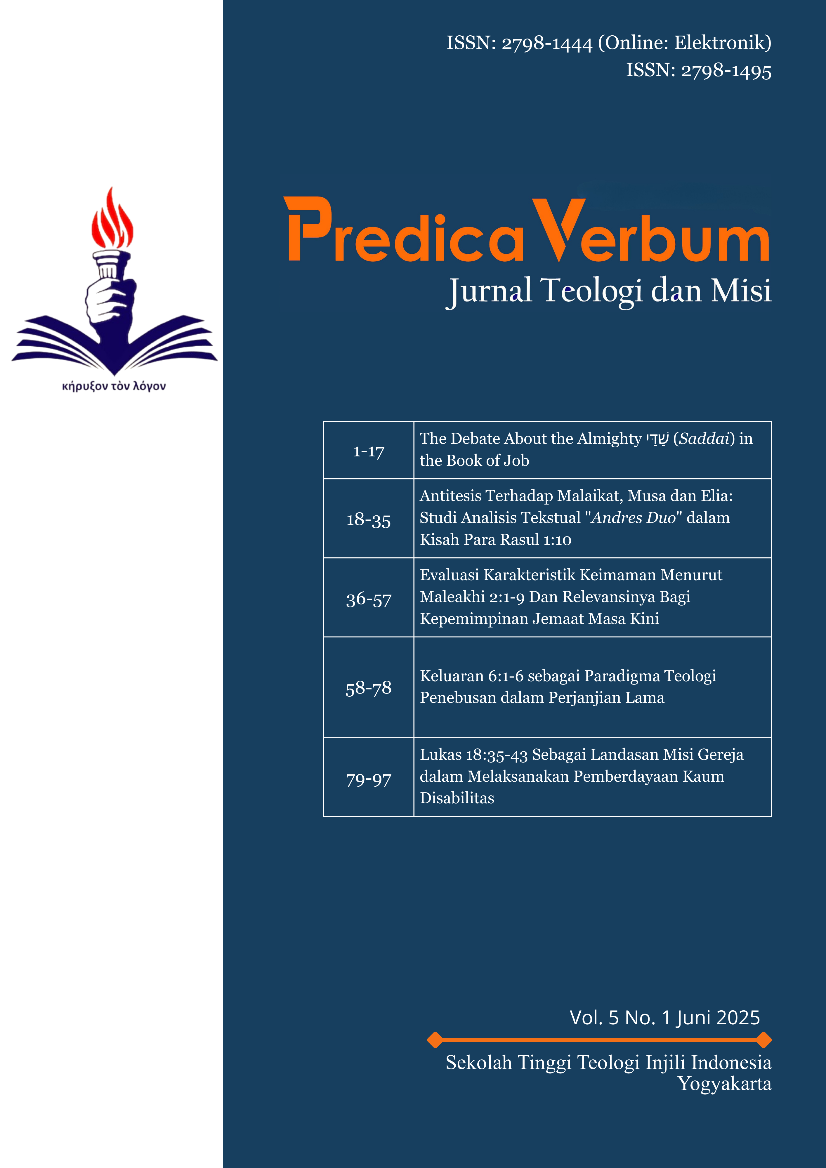 Subekti, Tri. “Providensia Allah Dalam Kitab Ayub.” REDOMINATE: Jurnal Teologi dan Pendidikan Kristiani 4, no. 1 (July 5, 2022): 1.